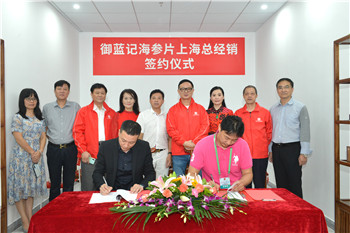当前页面:首页 - 商会资讯 - 商会新闻9月23日,我会执行会长王惠宁率常务副秘书长刘英松、吴应安及秘书处一行,应邀前往松江区上海国际食品产业园,参加御蓝记海参片上海总经销签约仪式。与我会食品分会会长吴泽发及省商会兼职副秘书长郭晓霞、卢远蓉、欧阳志明、王金标、邹静波等,共同见证了福建御蓝记水产食品有限公司与会员企业上海懿凡实业发展有限公司举行的“御蓝记海参片上海总经销”签约,并参观了食品产业园,走访食品分会联络处,为企业站台助力。