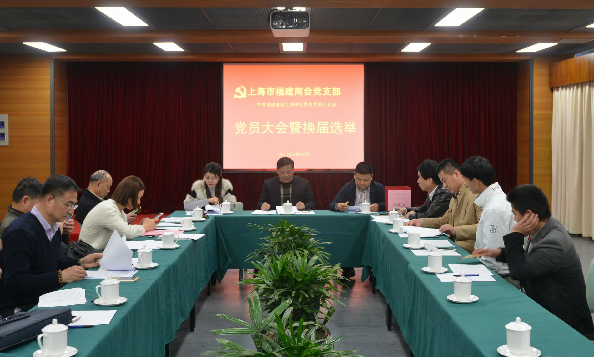 当前页面:首页 - 商会党建 - 党建新闻 经请示福建省驻上海单位党委并得到批复,商会党支部(即中共福建省驻上海单位委员会第八支部)换届选举于2017年3月28日下午举行并圆满完成任务。经支部党员大会选举,孙明喜同志当选为新一届党支部书记,支委进行分工,刘悦同志、陈乃端同志分别担任党支部组织委员和宣传委员。